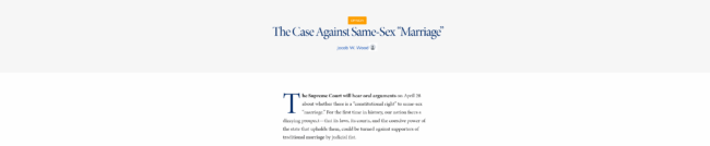 The Supreme Court will hear oral arguments on April 28 about whether there is a “constitutional right” to same-sex “marriage.”