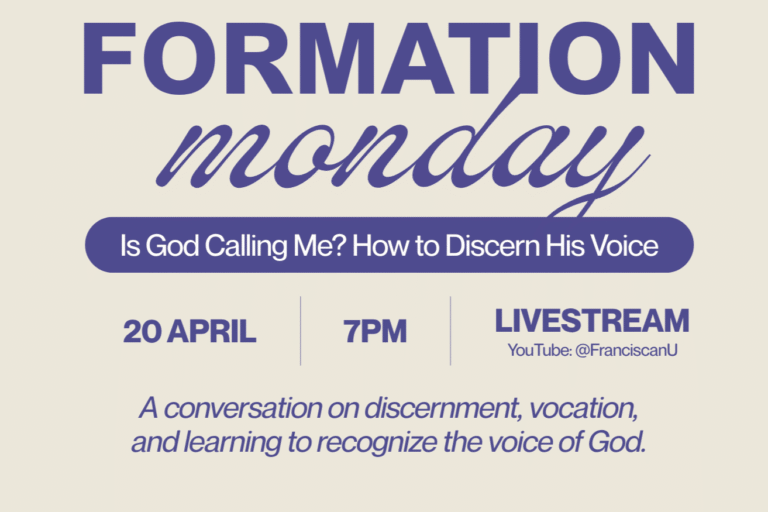 Formation Monday is a signature initiative of Franciscan University’s Office of Franciscan Life and Human and Spiritual Formation. Held throughout the academic year, the gatherings offer intentional opportunities for students, faculty, and staff to grow in the areas of relationships, identity, prayer, liturgy, mission, and vocational discernment.