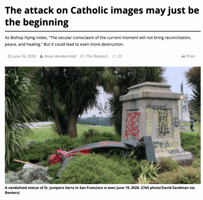 Catholic World Report – “The Attack on Catholic Statues May Just Be the Beginning”
