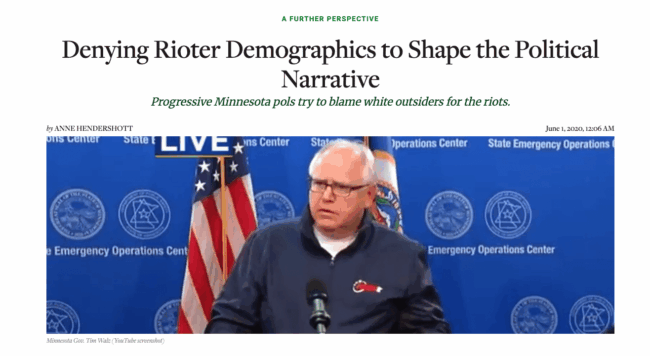 American Spectator – “Denying Rioter Demographics to Shape the Political Narrative”