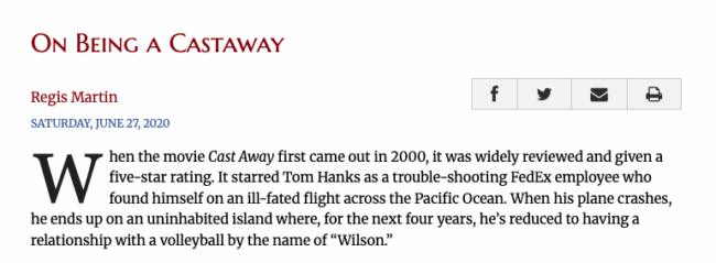 The Catholic Thing – “On Being a Castaway
