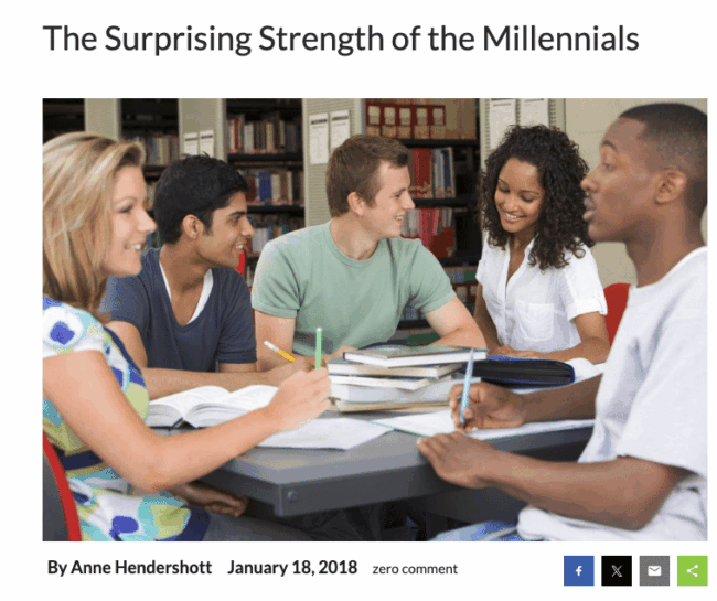 Minding The Campus- “The Surprising Strength of the Millennials.”