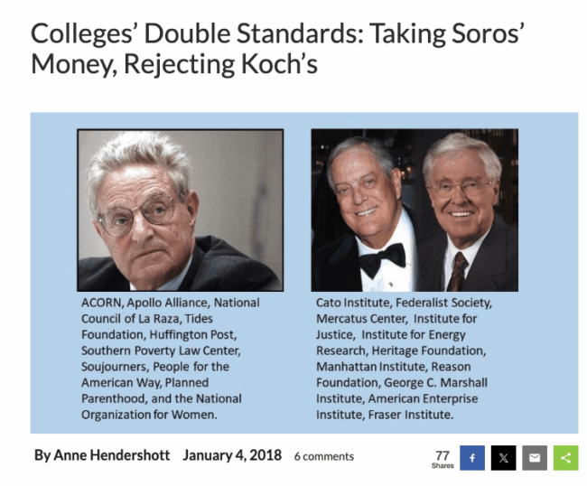 Minding The Campus – “College’s Double Standards: Taking Soros Money, Refusing Kochs.”
