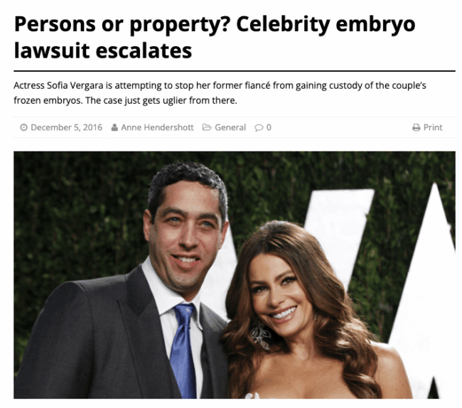 Catholic World Report – “Persons or Property: Celebrity Embryo Lawsuit Escalates”