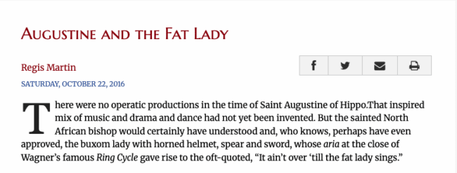 The Catholic Thing – “Augustine and the Fat Lady”