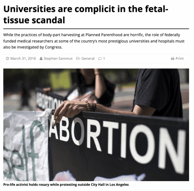 Catholic World Report – “Universities are Complicit in the Fetal Tissue Scandal”