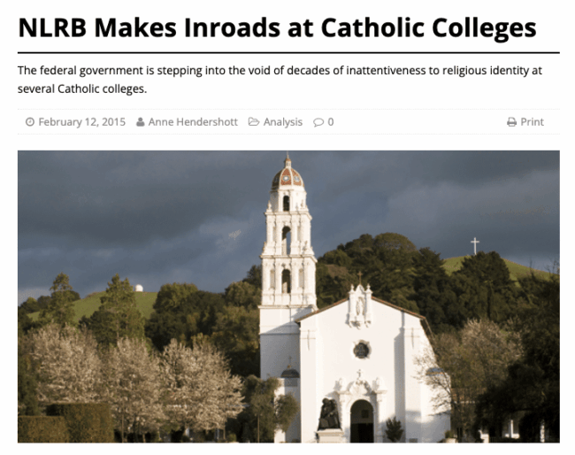 Catholic World Report – “NLRB Makes Inroads at Catholic Colleges”