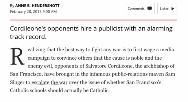 National Review Online – “Calling in the Big Guns to Fire at the San Francisco Archdiocese”