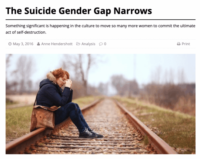 Catholic World Report – “The Suicide Gender Gap Narrows”