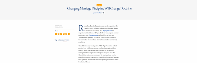 Crisis – “Changing Marriage Discipline Will Change Doctrine”