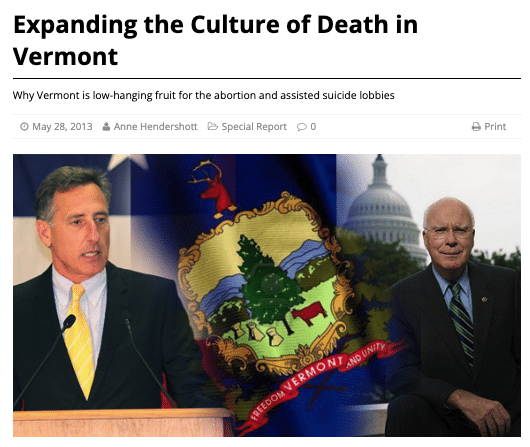 Catholic World Report – “Expanding the Culture of Death in Vermont”